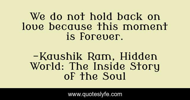 This page presents the quote "We do not hold back on love because this moment is forever.". Author of this quote is Kaushik Ram, Hidden World: The Inside Story of the Soul. This quote is about love, affection,.