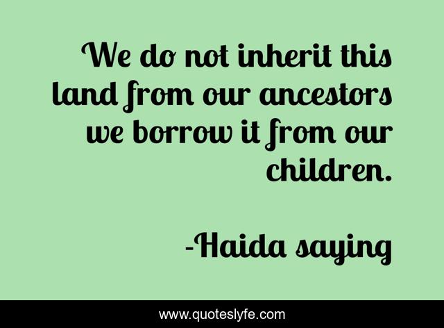 This page presents the quote "We do not inherit this land from our ancestors we borrow it from our children.". Author of this quote is Haida saying. .