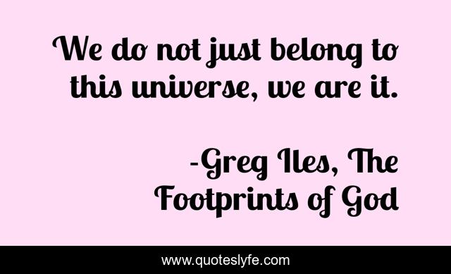 This page presents the quote "We do not just belong to this universe, we are it.". Author of this quote is Greg Iles, The Footprints of God. This quote is about universe, greg-iles,.