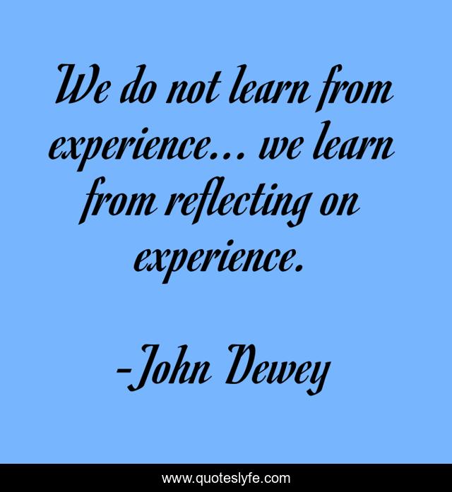 This page presents the quote "We do not learn from experience... we learn from reflecting on experience.". Author of this quote is John Dewey. This quote is about life, learning-from-mistakes, experience,.