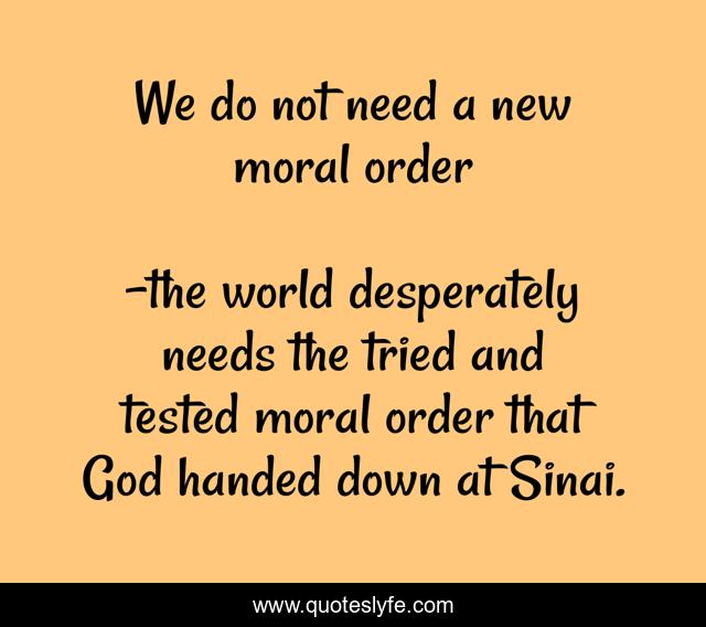 Check all other quotes by the world desperately needs the tried and tested moral order that God handed down at Sinai.