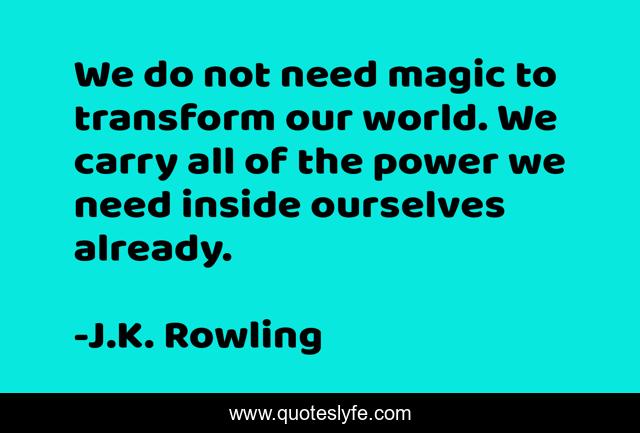 This page presents the quote "We do not need magic to transform our world. We carry all of the power we need inside ourselves already.". Author of this quote is J.K. Rowling. .