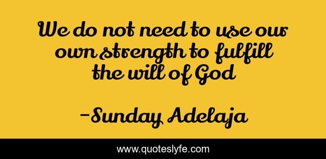 This page presents the quote "We do not need to use our own strength to fulfill the will of God". Author of this quote is Sunday Adelaja. This quote is about strength, god, calling, purpose, need, fulfill,.