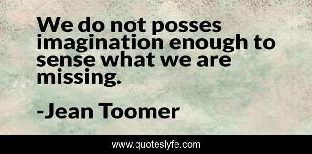 This page presents the quote "We do not posses imagination enough to sense what we are missing.". Author of this quote is Jean Toomer. .