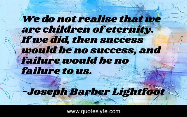 This page presents the quote "We do not realise that we are children of eternity. If we did, then success would be no success, and failure would be no failure to us.". Author of this quote is Joseph Barber Lightfoot. This quote is about eternity, children, success,.