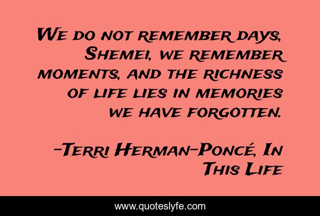 "Terri Herman-Poncé, In This Life Quotes." Quoteslyfe.com, 2025. Fri. 05 Dec. 2025. <https://www.quoteslyfe.com/quote/We-do-not-remember-days-Shemei-we-18378>.