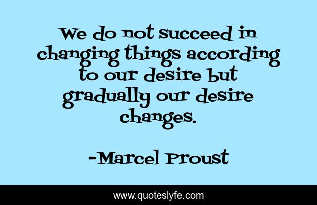 This page presents the quote "We do not succeed in changing things according to our desire but gradually our desire changes.". Author of this quote is Marcel Proust. .