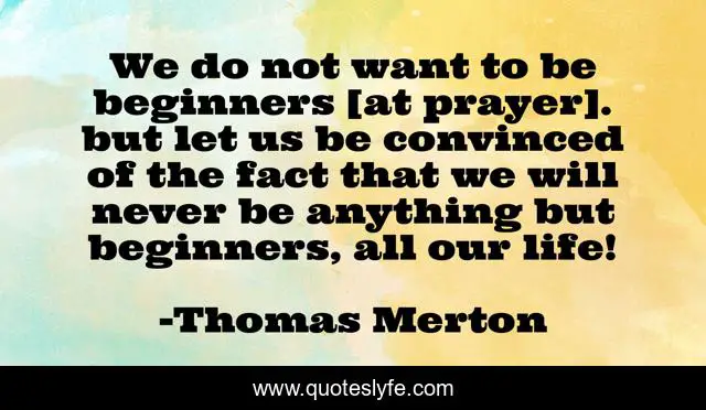 This page presents the quote "We do not want to be beginners [at prayer]. but let us be convinced of the fact that we will never be anything but beginners, all our life!". Author of this quote is Thomas Merton. .
