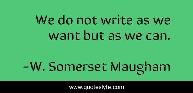 This page presents the quote "We do not write as we want but as we can.". Author of this quote is W. Somerset Maugham. .