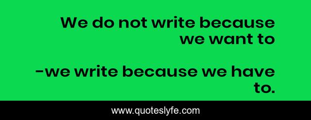 "we write because we have to. Quotes." Quoteslyfe.com, 2025. Sat. 13 Dec. 2025. <https://www.quoteslyfe.com/quote/We-do-not-write-because-we-want-27216>.