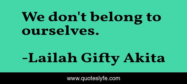 This page presents the quote "We don't belong to ourselves.". Author of this quote is Lailah Gifty Akita. This quote is about living, life, inspiration,.