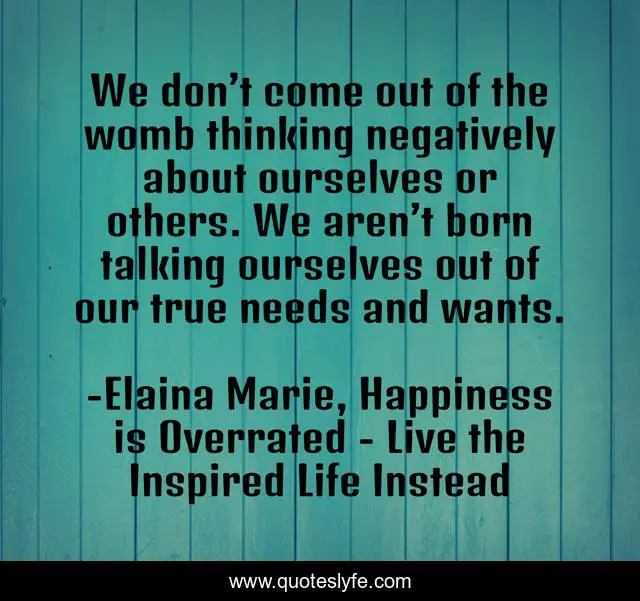 This page presents the quote "We don’t come out of the womb thinking negatively about ourselves or others. We aren’t born talking ourselves out of our true needs and wants.". Author of this quote is Elaina Marie, Happiness is Overrated - Live the Inspired Life Instead. This quote is about trust, needs-and-wants,.