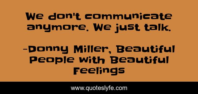 "Donny Miller, Beautiful People with Beautiful Feelings Quotes." Quoteslyfe.com, 2025. Fri. 05 Dec. 2025. <https://www.quoteslyfe.com/quote/We-don-t-communicate-anymore-We-just-185276>.