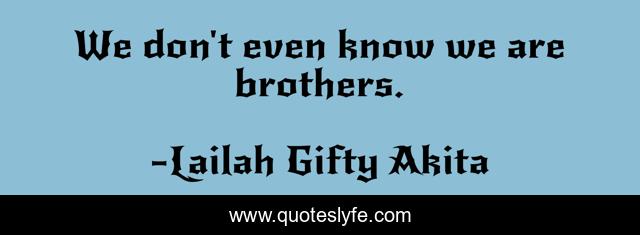This page presents the quote "We don't even know we are brothers.". Author of this quote is Lailah Gifty Akita. This quote is about love, brothers, affection, humanity,.