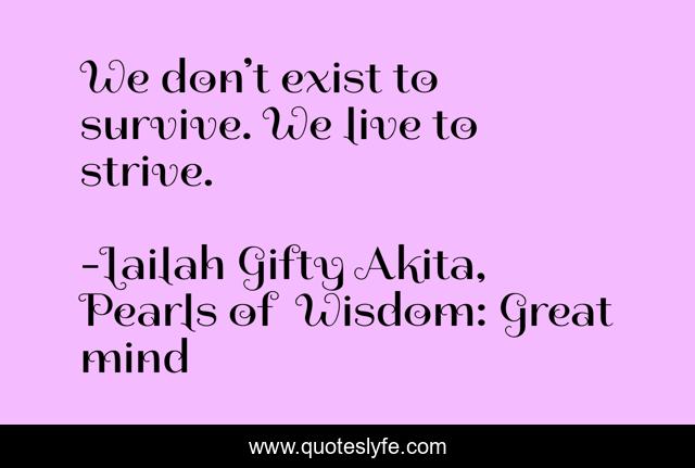 "Lailah Gifty Akita, Pearls of Wisdom: Great mind Quotes." Quoteslyfe.com, 2025. Fri. 05 Dec. 2025. <https://www.quoteslyfe.com/quote/We-don-t-exist-to-survive-We-104480>.