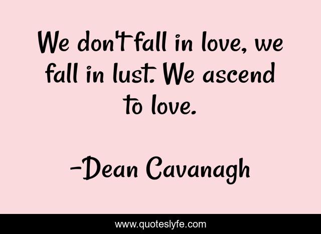 This page presents the quote "We don't fall in love, we fall in lust. We ascend to love.". Author of this quote is Dean Cavanagh. This quote is about lust, love, affection,.