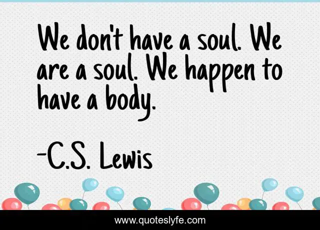 This page presents the quote "We don't have a soul. We are a soul. We happen to have a body.". Author of this quote is C.S. Lewis. This quote is about enthusiasm, inspirational, christianity,.