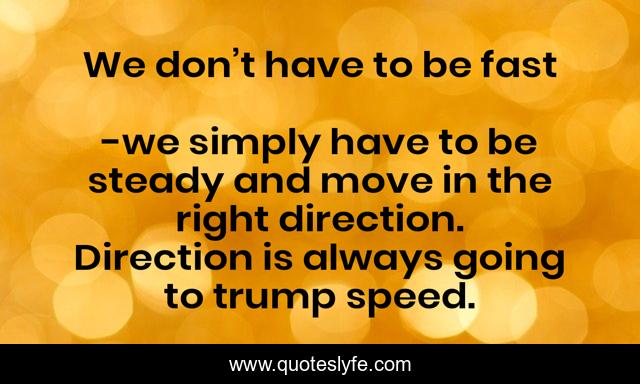 This page presents the quote "We don’t have to be fast". Author of this quote is we simply have to be steady and move in the right direction. Direction is always going to trump speed.. .