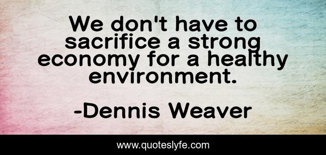 This page presents the quote "We don't have to sacrifice a strong economy for a healthy environment.". Author of this quote is Dennis Weaver. This quote is about healthy, sacrifice, strong,.