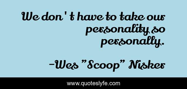 This page presents the quote "We don't have to take our personality so personally.". Author of this quote is Wes "Scoop" Nisker. This quote is about positive, self, motivational, optimistic, confidence,.