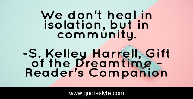 "S. Kelley Harrell, Gift of the Dreamtime - Reader's Companion Quotes." Quoteslyfe.com, 2025. Fri. 05 Dec. 2025. <https://www.quoteslyfe.com/quote/We-don-t-heal-in-isolation-but-148311>.