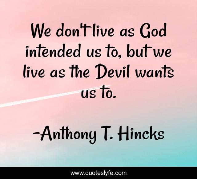 This page presents the quote "We don't live as God intended us to, but we live as the Devil wants us to.". Author of this quote is Anthony T. Hincks. This quote is about wants, life, devil, intend, god, religion, live, greed, philosphy,.