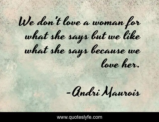 This page presents the quote "We don't love a woman for what she says but we like what she says because we love her.". Author of this quote is Andri Maurois. .