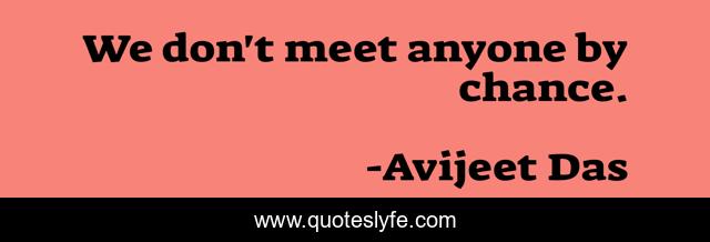 This page presents the quote "We don't meet anyone by chance.". Author of this quote is Avijeet Das. This quote is about anyone, chance, meaning-of-life, life, meeting-people,.