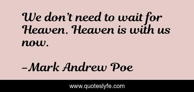 This page presents the quote "We don’t need to wait for Heaven. Heaven is with us now.". Author of this quote is Mark Andrew Poe. This quote is about heaven, harry-moon, rabbit,.