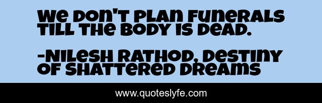 "Nilesh Rathod, Destiny of Shattered Dreams Quotes." Quoteslyfe.com, 2025. Tue. 09 Dec. 2025. <https://www.quoteslyfe.com/quote/We-don-t-plan-funerals-till-the-226568>.