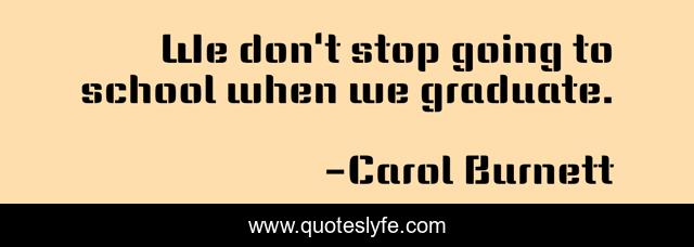 This page presents the quote "We don't stop going to school when we graduate.". Author of this quote is Carol Burnett. This quote is about school, going, stop,.