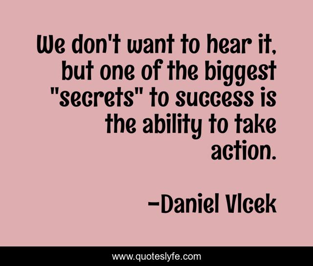 This page presents the quote "We don't want to hear it, but one of the biggest "secrets" to success is the ability to take action.". Author of this quote is Daniel Vlcek. This quote is about action, making-things-happen, success,.