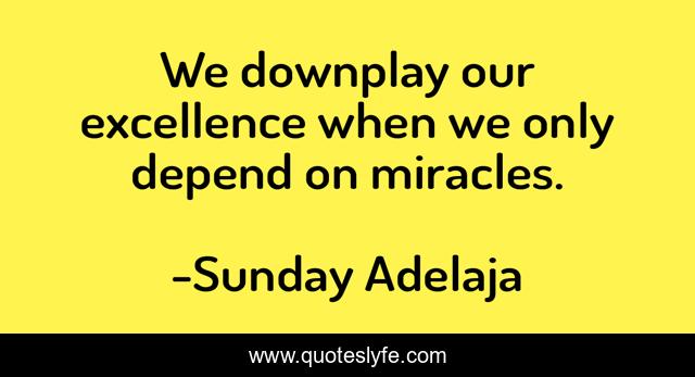 This page presents the quote "We downplay our excellence when we only depend on miracles.". Author of this quote is Sunday Adelaja. This quote is about miracles, excellence, depending,.