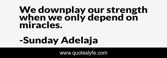 This page presents the quote "We downplay our strength when we only depend on miracles.". Author of this quote is Sunday Adelaja. This quote is about miracles, strength, depending,.