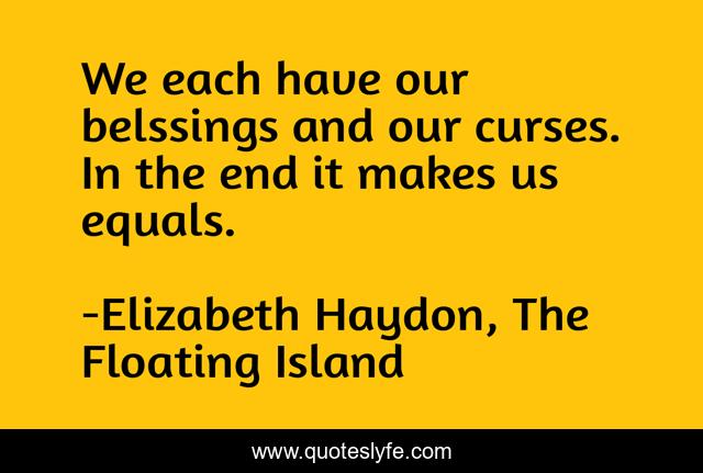 This page presents the quote "We each have our belssings and our curses. In the end it makes us equals.". Author of this quote is Elizabeth Haydon, The Floating Island. .