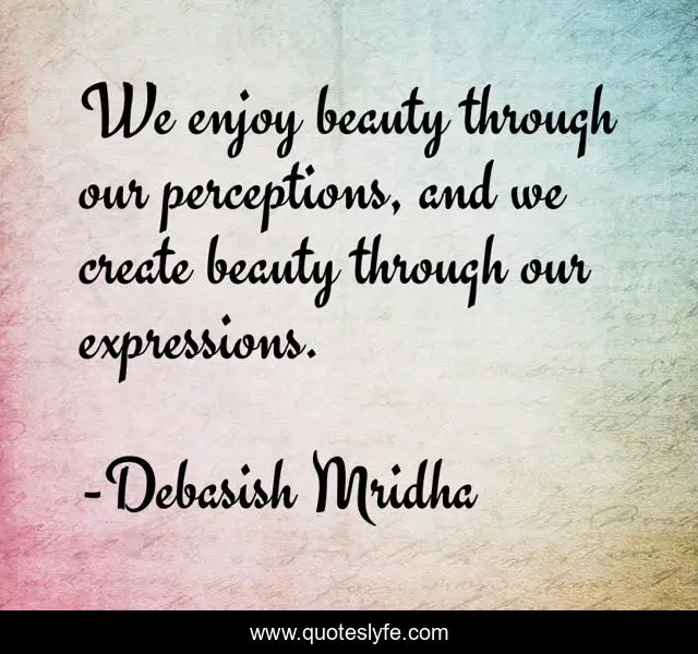This page presents the quote "We enjoy beauty through our perceptions, and we create beauty through our expressions.". Author of this quote is Debasish Mridha. This quote is about beauty, philosophy, debasish-mridha, quotes, debasish-mridha-md, inspirational, enthusiasm,.
