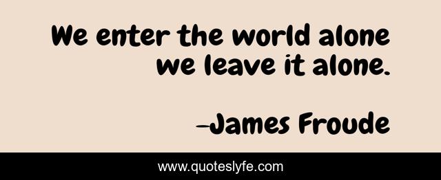 This page presents the quote "We enter the world alone we leave it alone.". Author of this quote is James Froude. .
