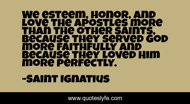 This page presents the quote "We esteem, honor, and love the apostles more than the other saints, because they served God more faithfully and because they loved Him more perfectly.". Author of this quote is Saint Ignatius. This quote is about loved, love, honor, affection,.