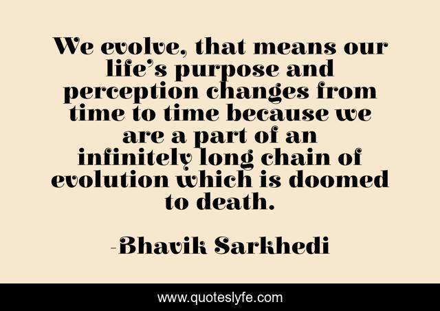 This page presents the quote "We evolve, that means our life’s purpose and perception changes from time to time because we are a part of an infinitely long chain of evolution which is doomed to death.". Author of this quote is Bhavik Sarkhedi. .