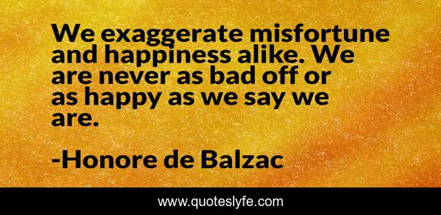 "Honore de Balzac Quotes." Quoteslyfe.com, 2025. Fri. 05 Dec. 2025. <https://www.quoteslyfe.com/quote/We-exaggerate-misfortune-and-happiness-alike-We-297529>.