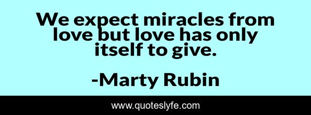 This page presents the quote "We expect miracles from love but love has only itself to give.". Author of this quote is Marty Rubin. This quote is about miracles, love, expectations, affection,.