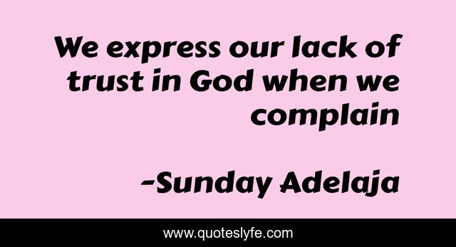 This page presents the quote "We express our lack of trust in God when we complain". Author of this quote is Sunday Adelaja. This quote is about trust, god, express, lack, complain,.