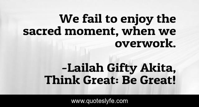 "Lailah Gifty Akita, Think Great: Be Great! Quotes." Quoteslyfe.com, 2025. Fri. 05 Dec. 2025. <https://www.quoteslyfe.com/quote/We-fail-to-enjoy-the-sacred-moment-86380>.