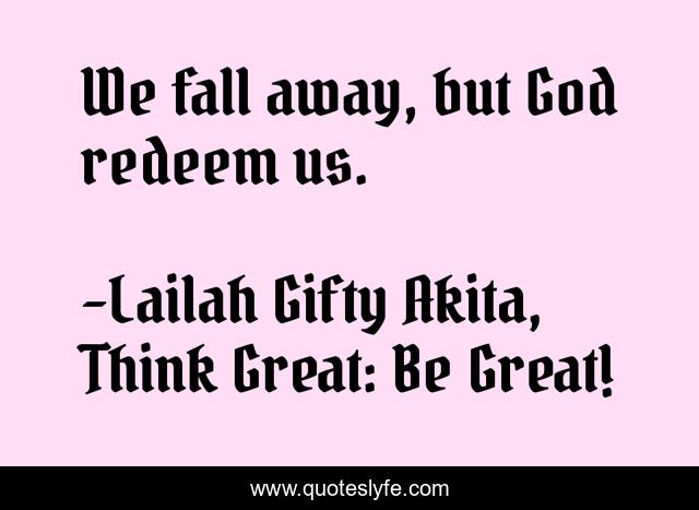 "Lailah Gifty Akita, Think Great: Be Great! Quotes." Quoteslyfe.com, 2025. Mon. 08 Dec. 2025. <https://www.quoteslyfe.com/quote/We-fall-away-but-God-redeem-us-121931>.