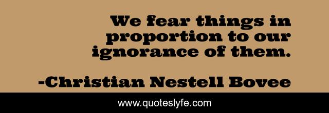 This page presents the quote "We fear things in proportion to our ignorance of them.". Author of this quote is Christian Nestell Bovee. This quote is about things, ignorance,.