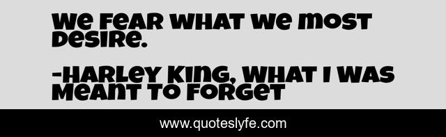 "Harley King, What I Was Meant To Forget Quotes." Quoteslyfe.com, 2025. Mon. 08 Dec. 2025. <https://www.quoteslyfe.com/quote/We-fear-what-we-most-desire-45040>.