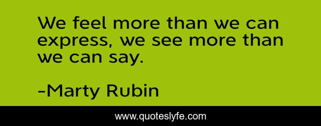 This page presents the quote "We feel more than we can express, we see more than we can say.". Author of this quote is Marty Rubin. This quote is about the-inexpressible, feeling, speech, language,.