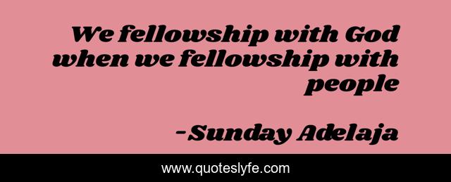 This page presents the quote "We fellowship with God when we fellowship with people". Author of this quote is Sunday Adelaja. This quote is about kingdom, life, love, destiny, people, money, god, work, fellowship-with-people,.