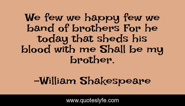 This page presents the quote "We few we happy few we band of brothers For he today that sheds his blood with me Shall be my brother.". Author of this quote is William Shakespeare. .