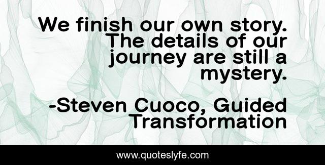 This page presents the quote "We finish our own story. The details of our journey are still a mystery.". Author of this quote is Steven Cuoco, Guided Transformation. This quote is about brainy, best-selling-self-help-books, international-authors, brainyquote-com, inspirational, quote-of-the-day, enthusiasm, quotes-to-live-by, brainy-words,.